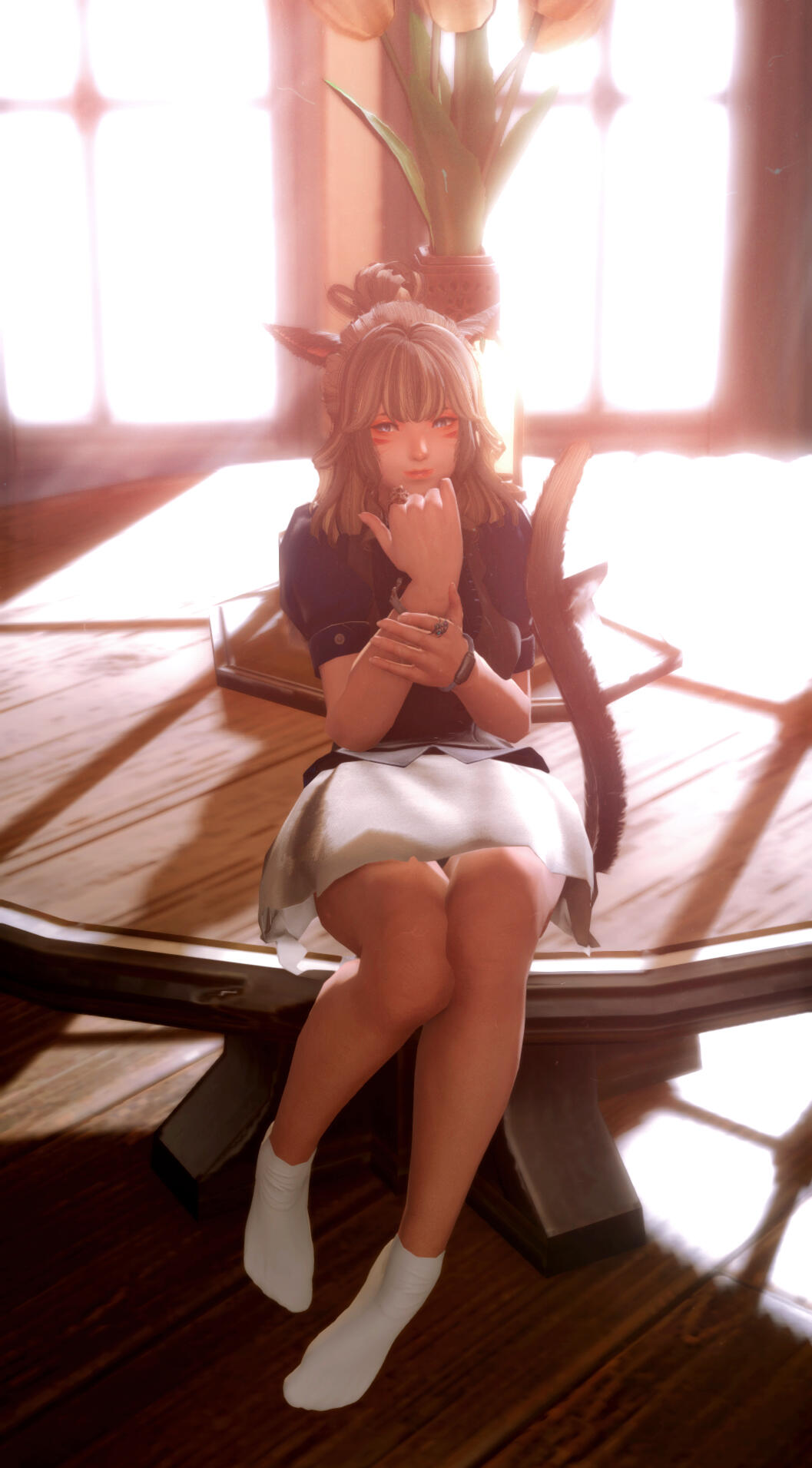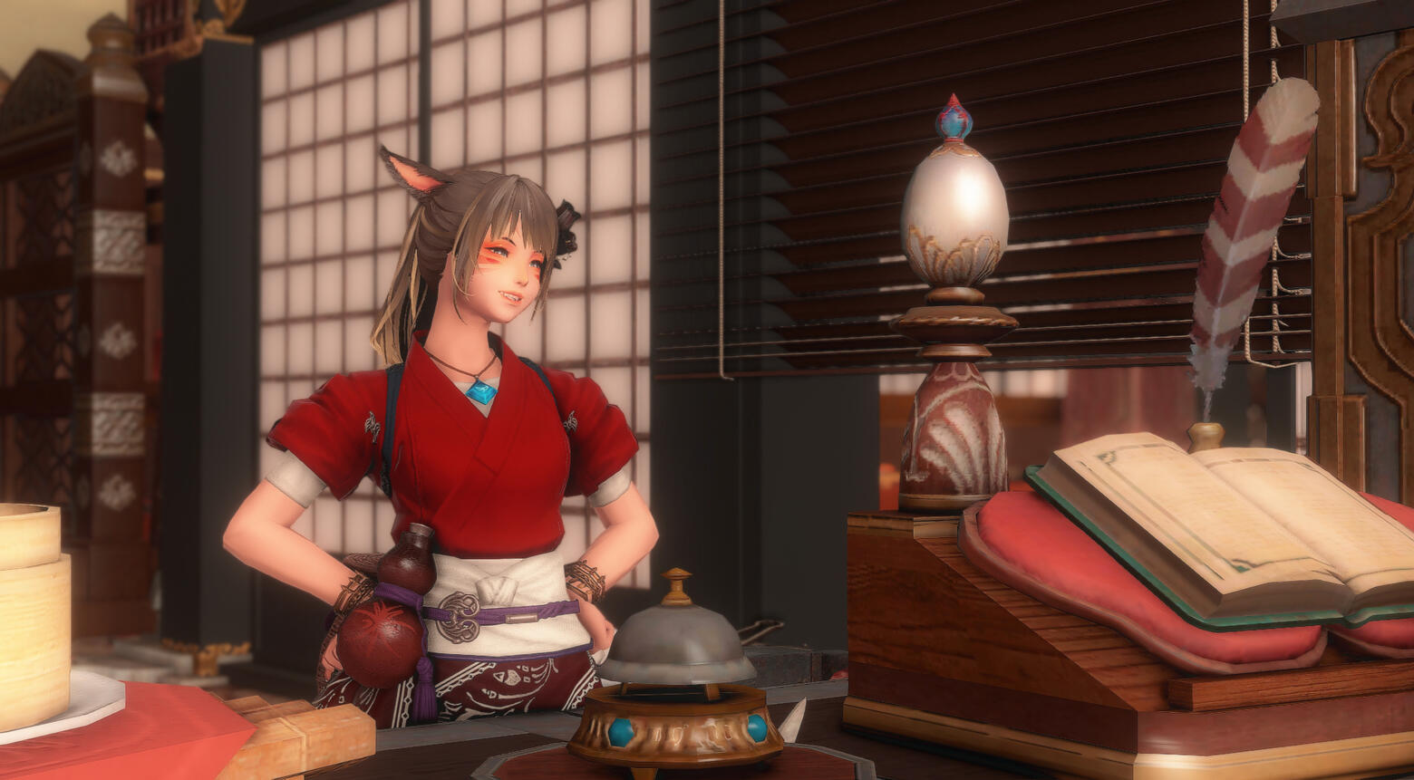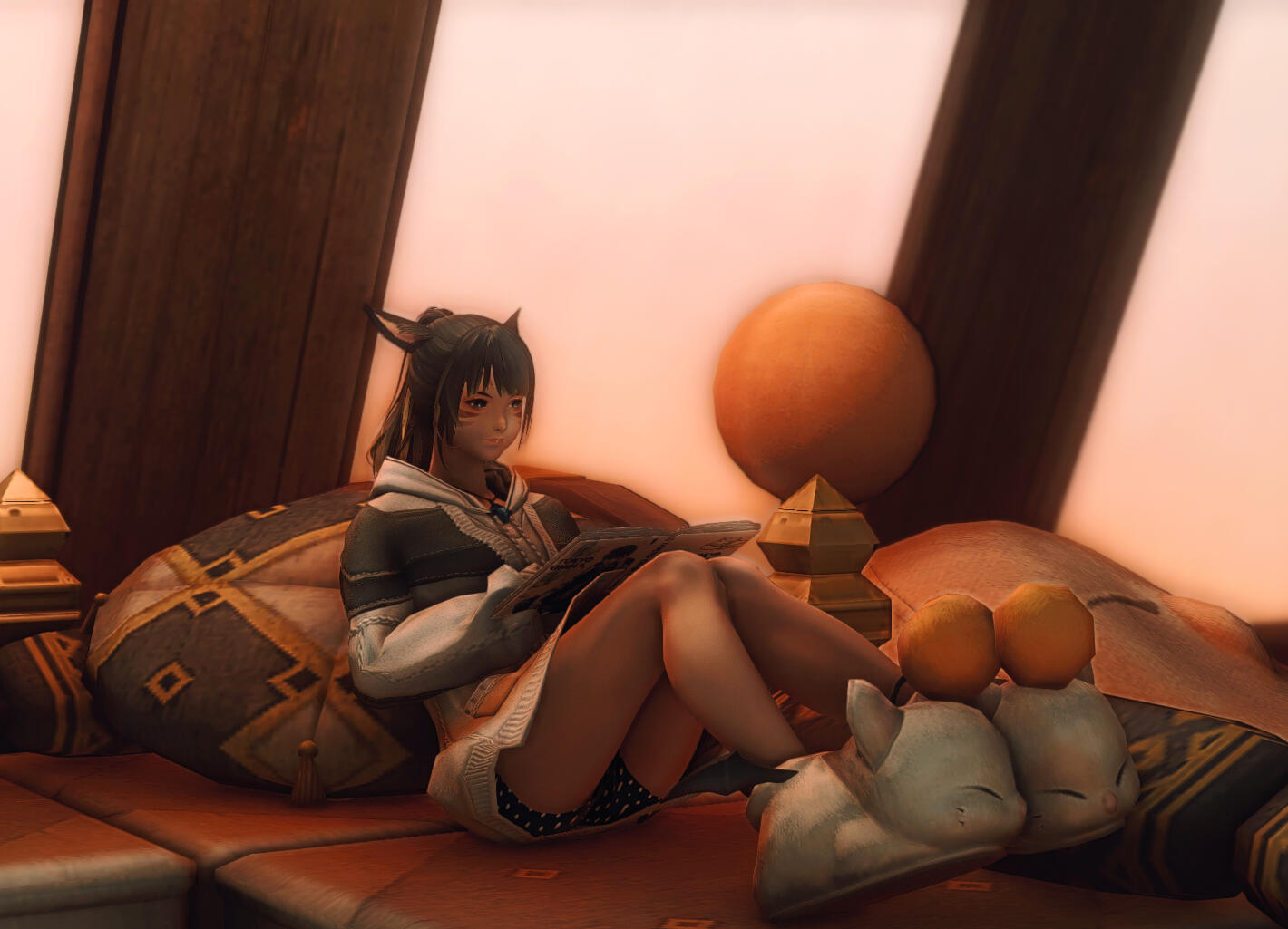 Shes, quite the kind and helpful miqote she seems to be, i bit of a trouble maker and a flirt, though she is unware of her doings, she is can be serious when it comes to work...but often times tries to find alot of free time for her friends. a helper and a listener.