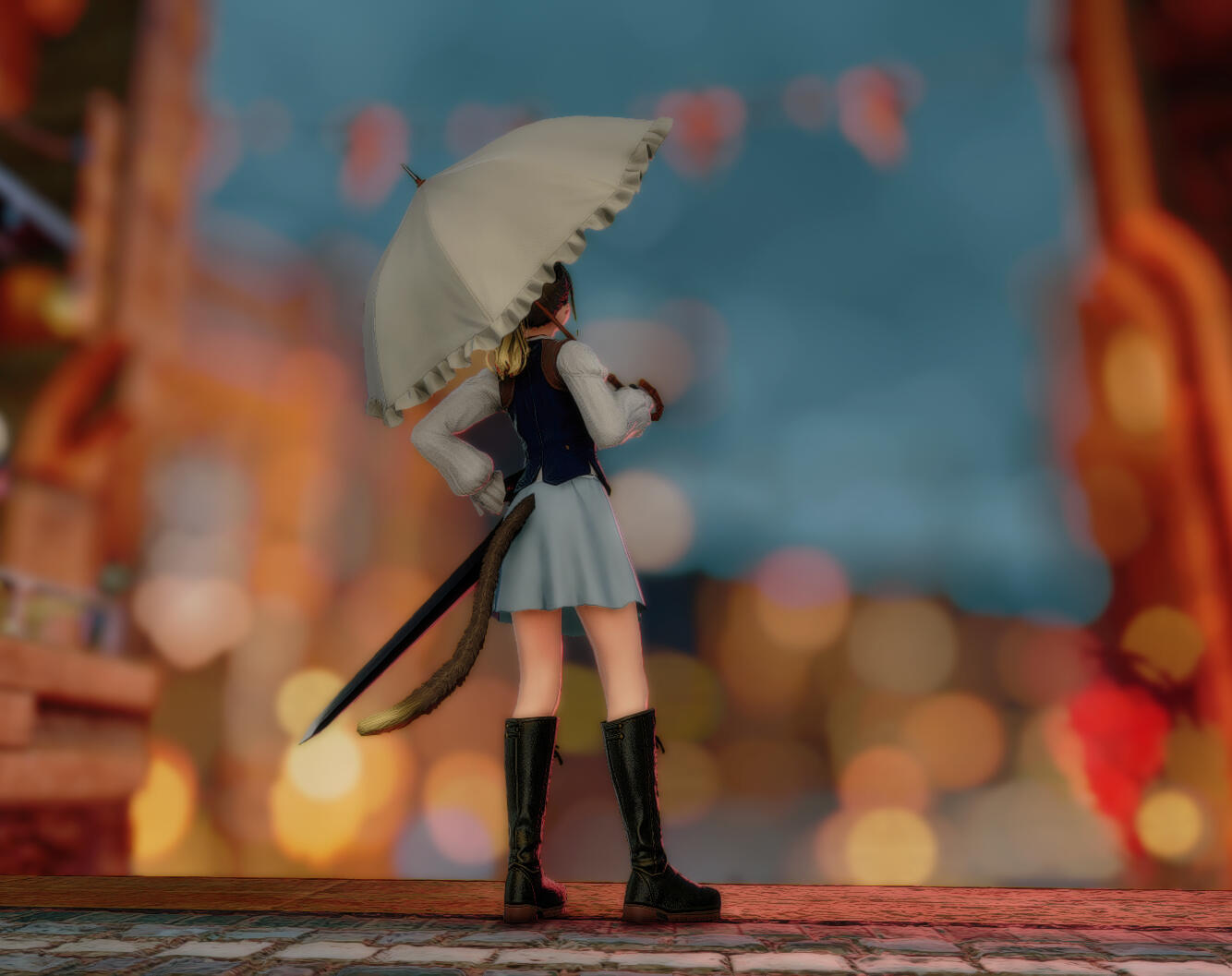 She traveled to Uldah to join the gladiators guild, met with much doubt in the beginning, she had worked herself tirelessly to gain approval of her teachers and comrades, some days shed worked till she couldn't lift a sword. As she flourished in the guild it did not go unnoticed by the knights, only experienced with a blade for 2 years they gave her an opportunity to join their ranks. Each trail met was tremendous struggle, yet she had persevered, when it came time to take her oath, she gave no allegiance to the sultana, but to the common people, to her comrades, and to the fallen. their cries for help and vengeance will not fall on deaf ears.